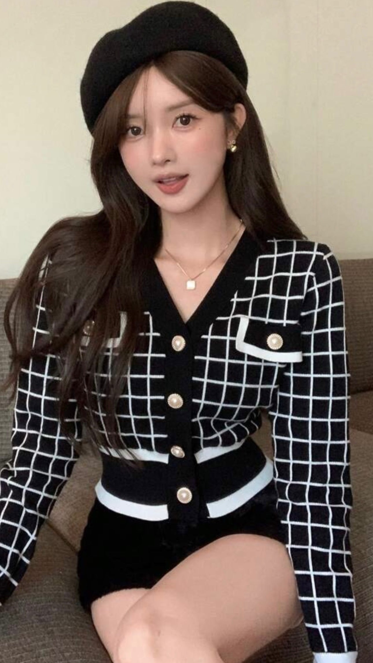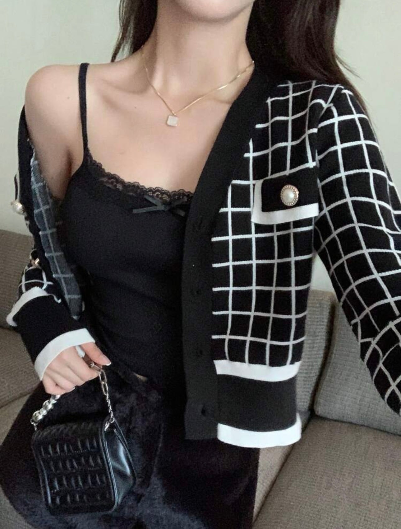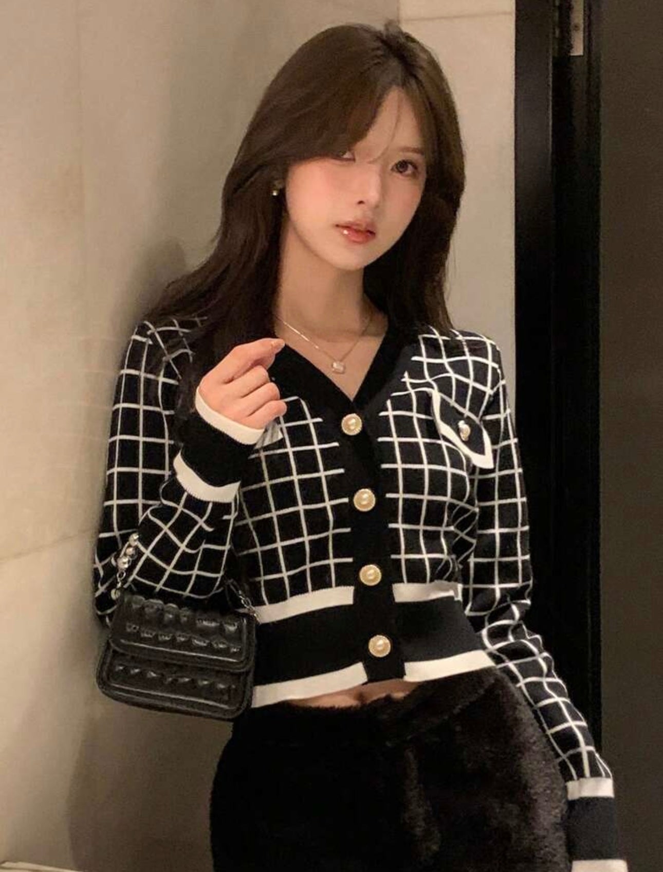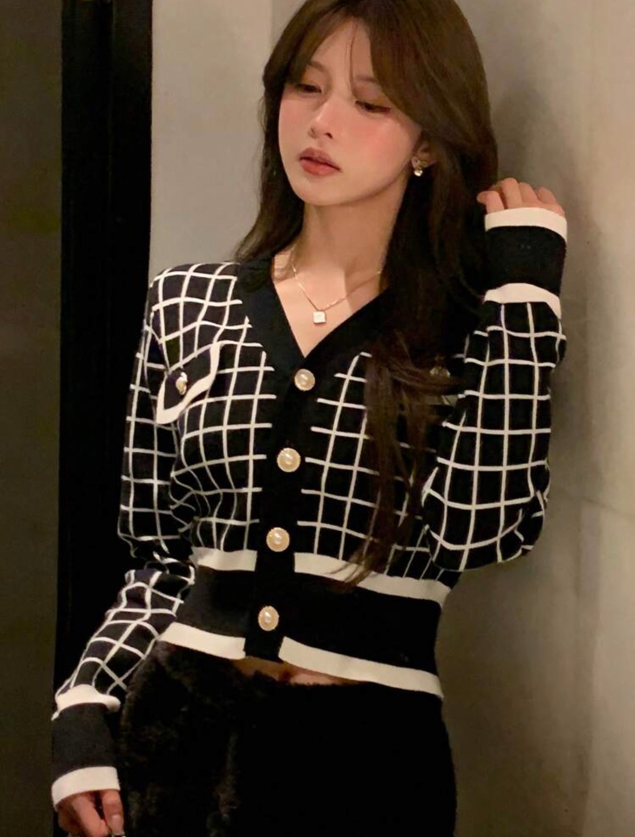 Buso negro blanco en hilo botones dorados