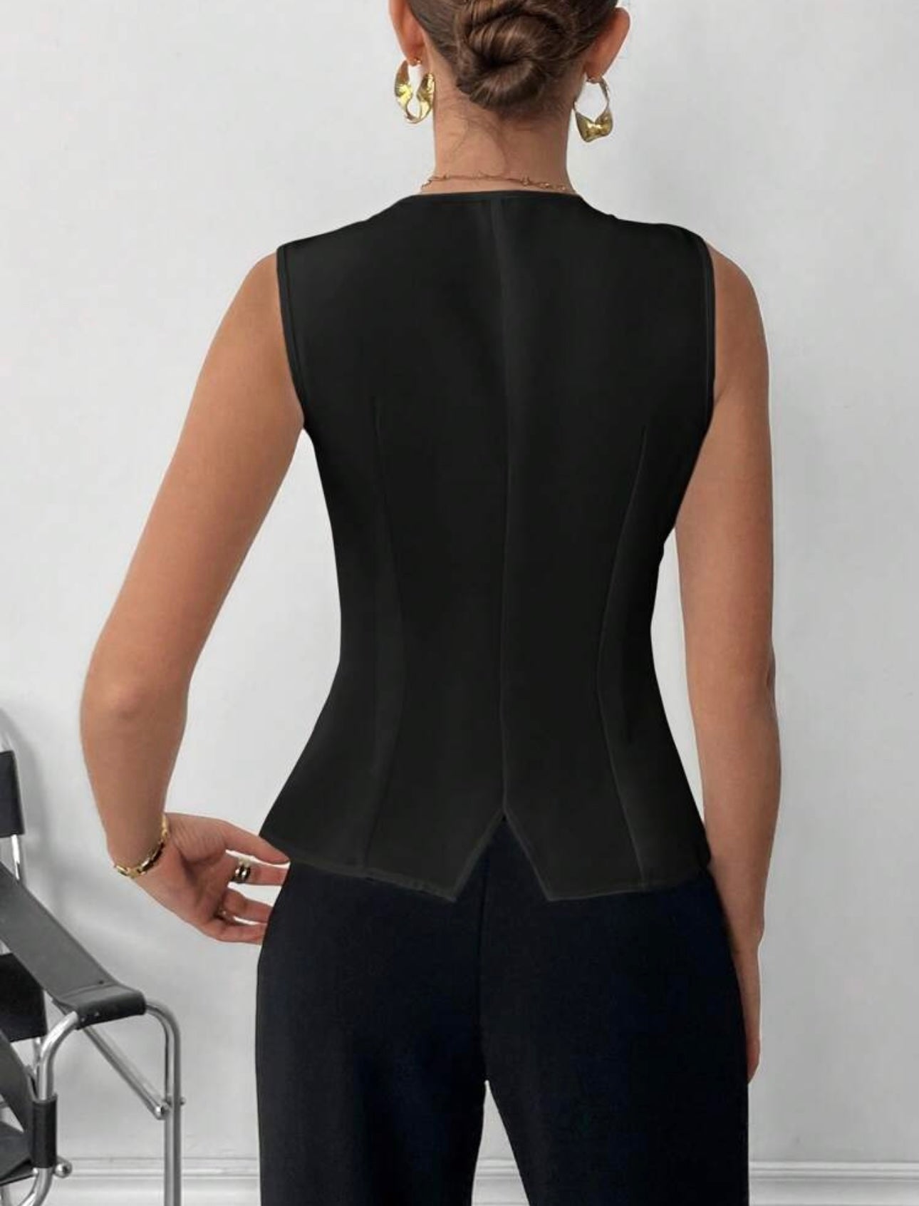 Chalecho negro con botones en prendedor