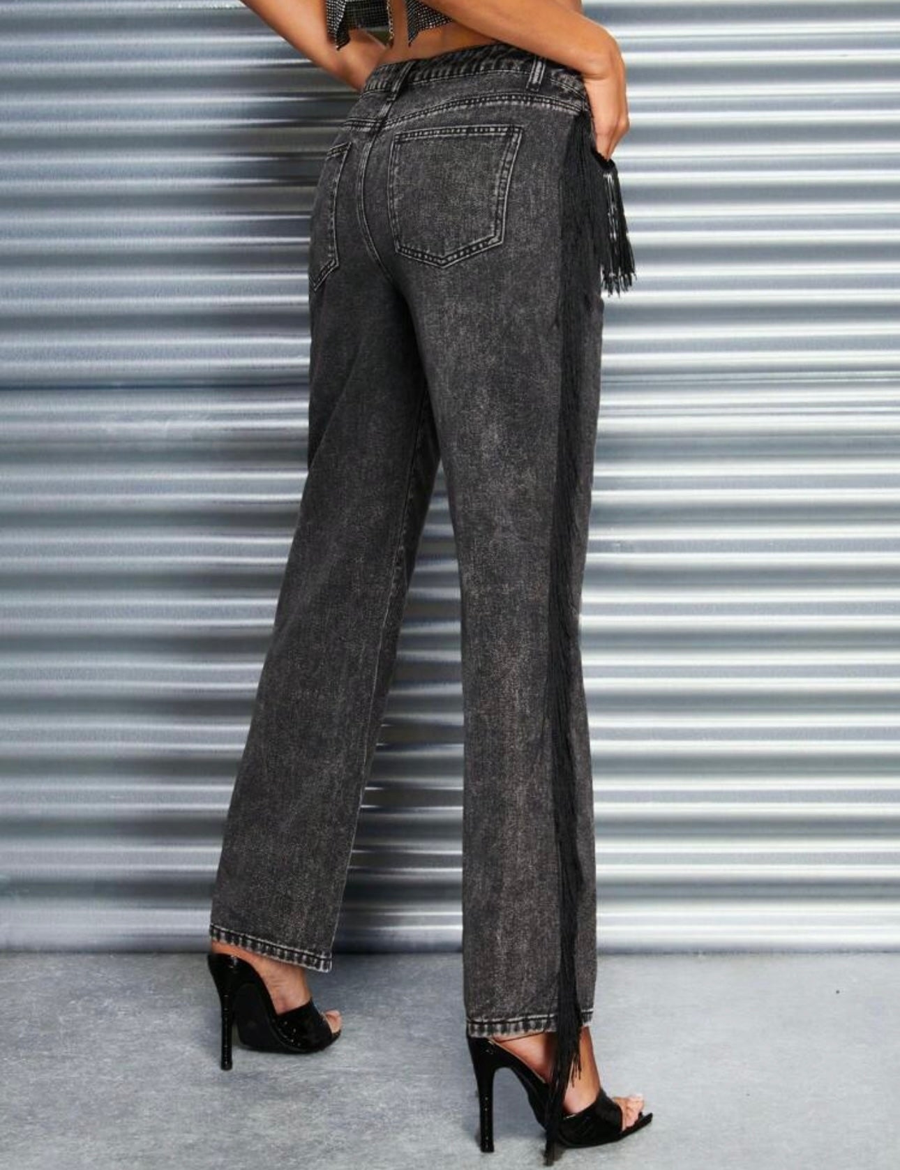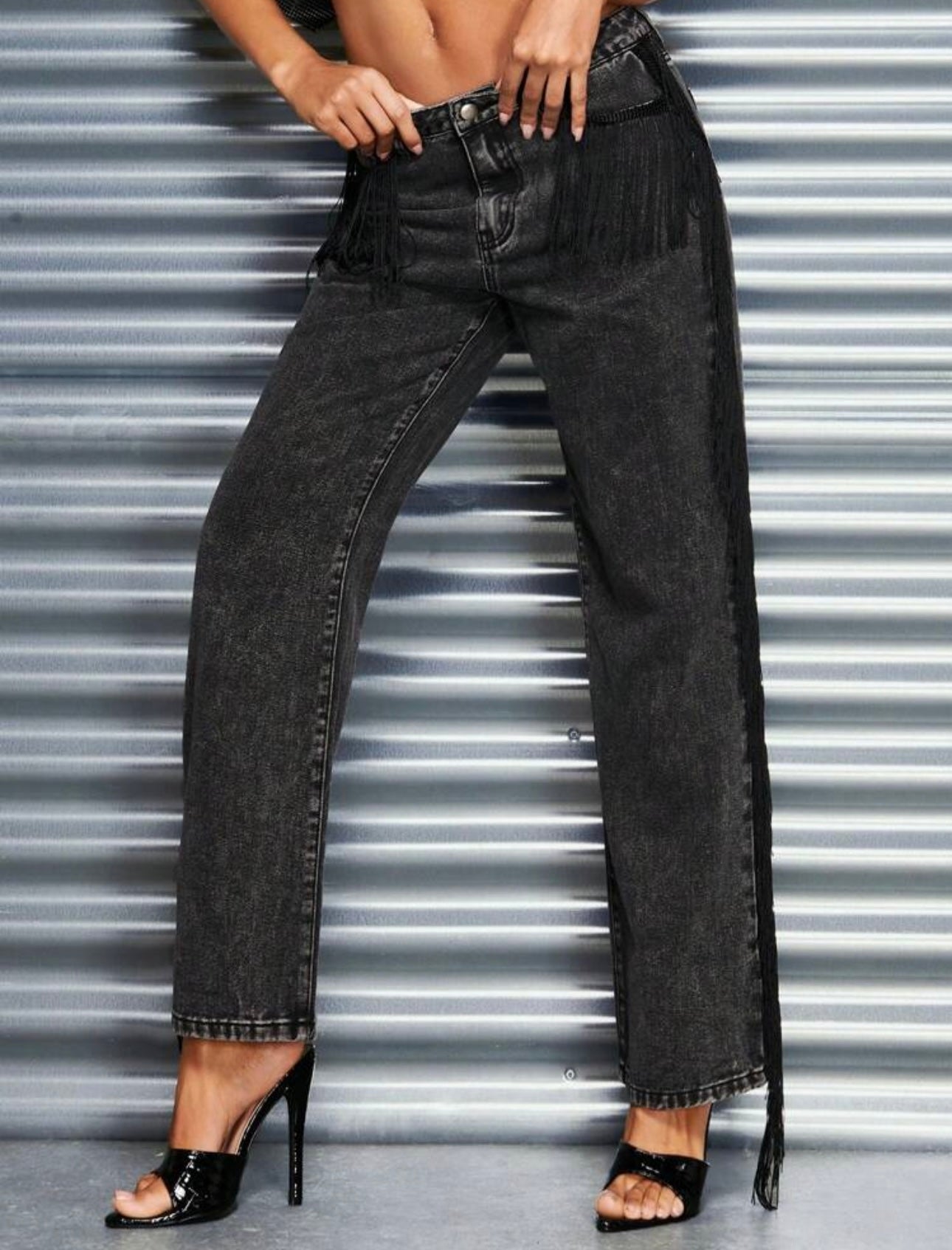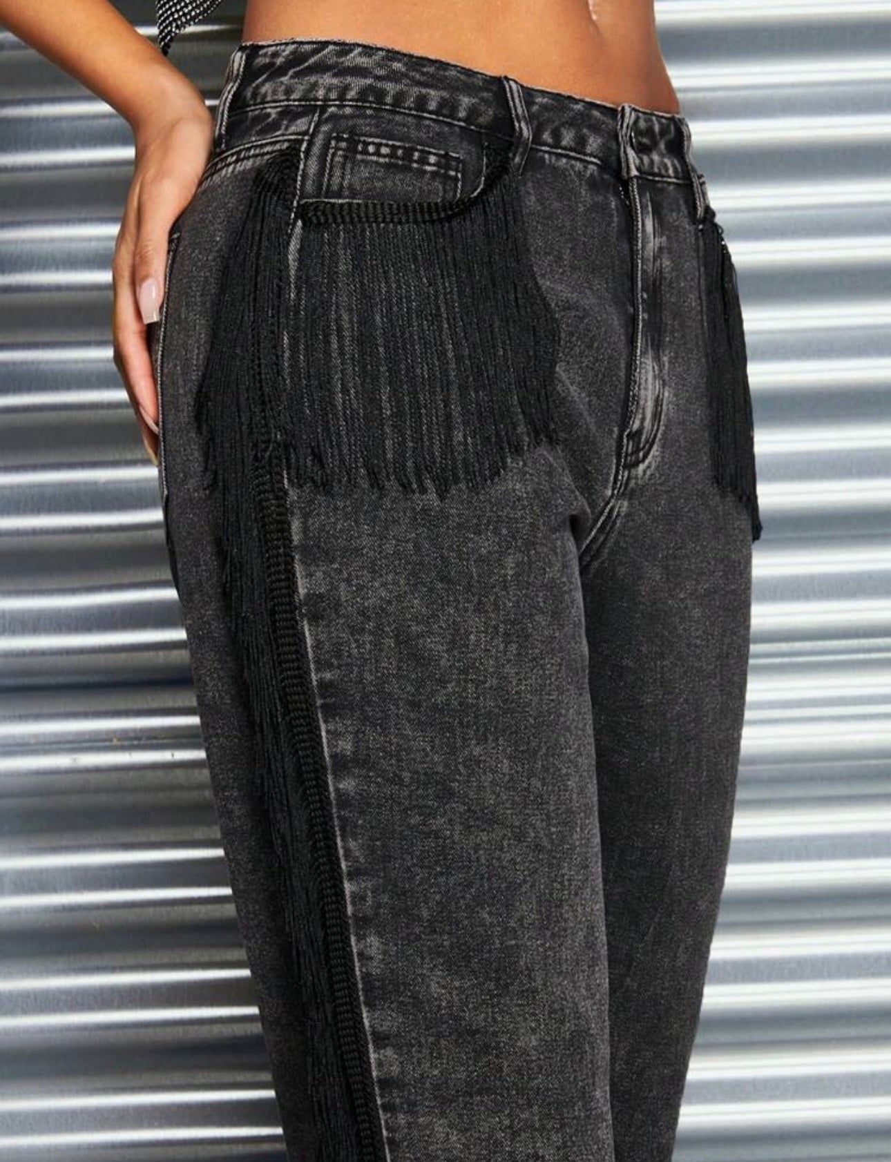 Jeans negro con flecos